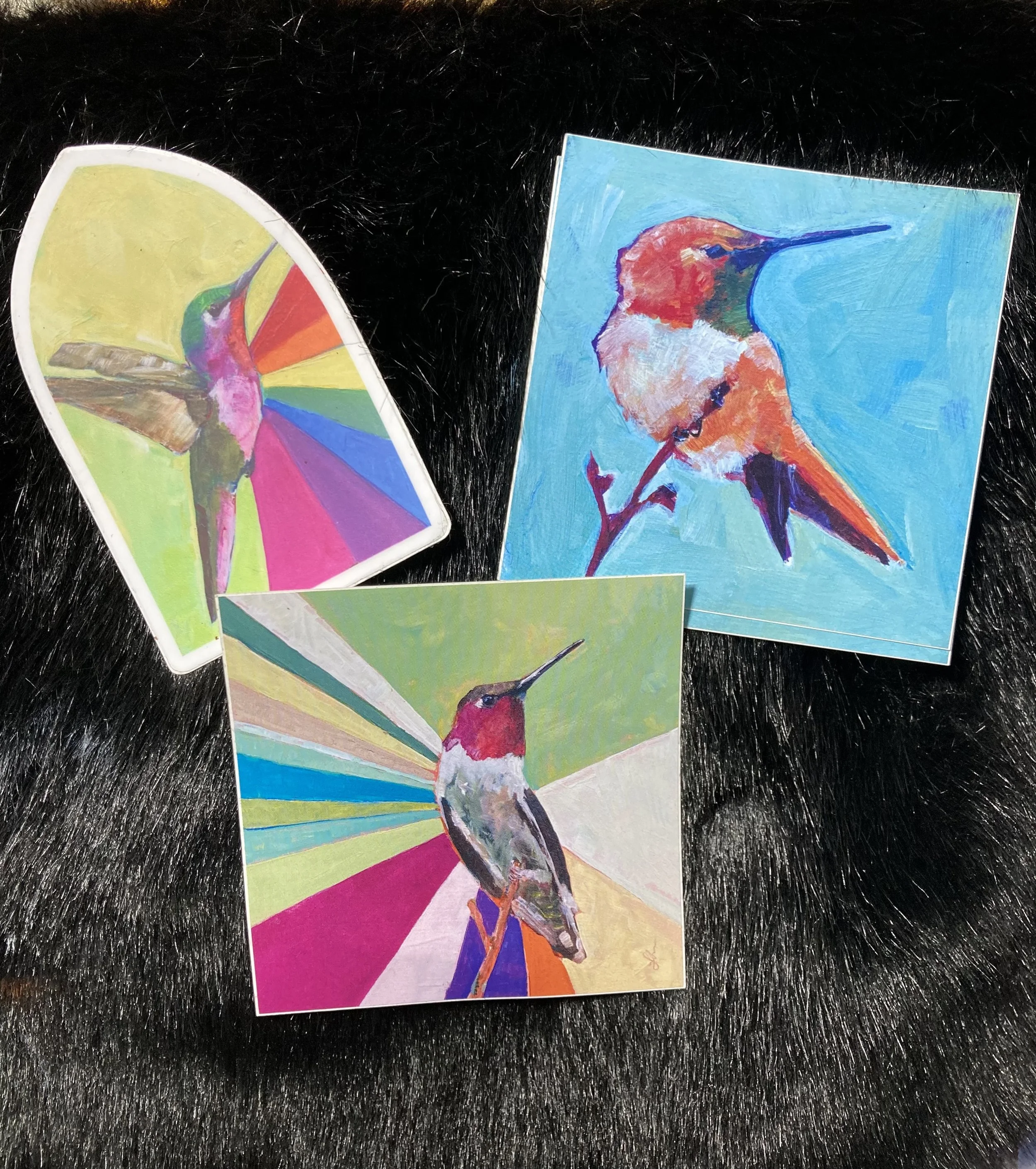 Some merch I carry. All from my original art. Cards, stickers, can coolers, pins, patches, keychains, postcards. Wholesale? Send me an email: lisalaserart@gmail.com